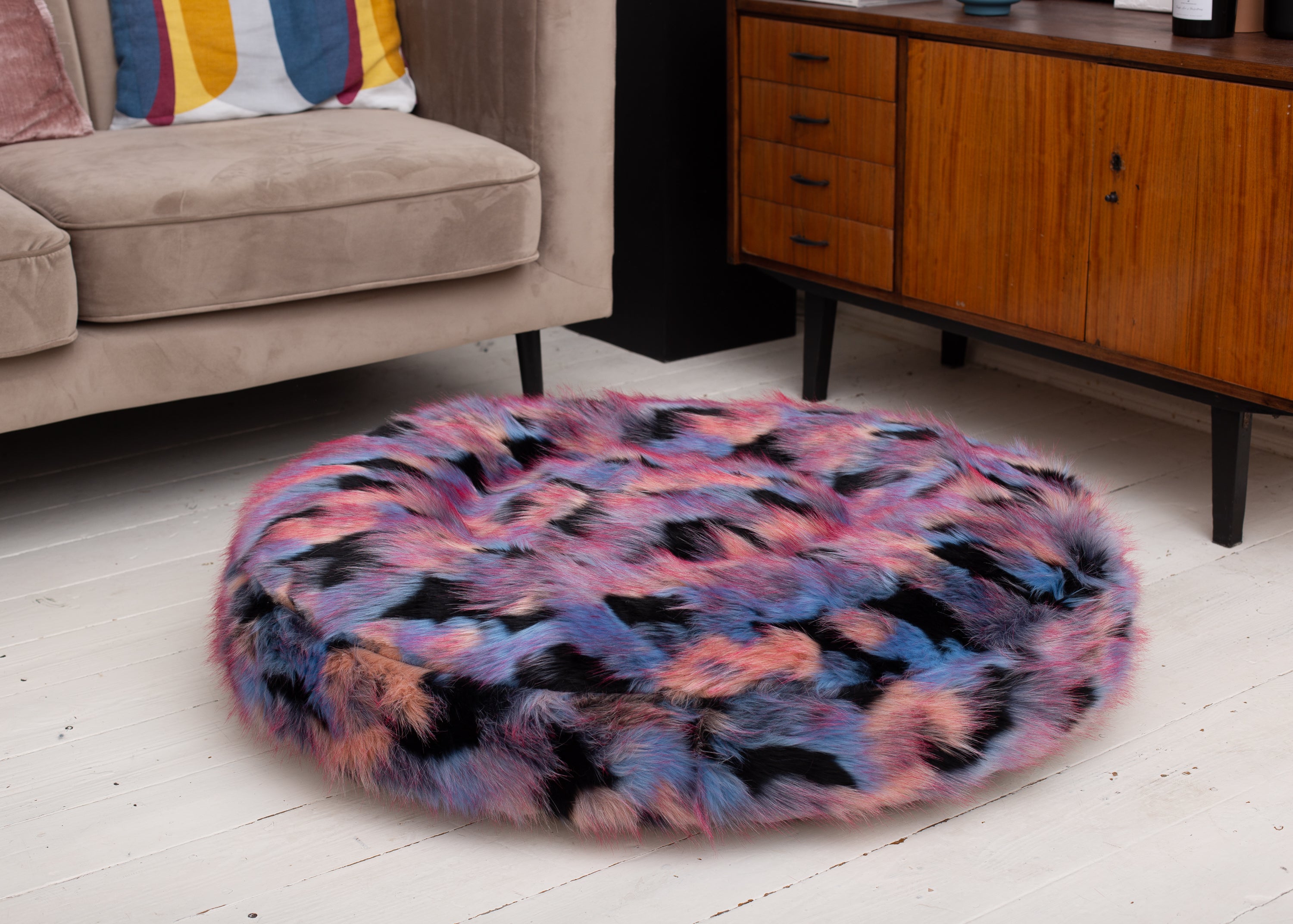 Die meisten unserer Stoffe sind eher kurzfloorig – aber dieser hier setzt ein Statement! Mit ca. 4–5 cm langem Floor ist er nicht nur superkuschelig, sondern auch optisch ein echtes Highlight. Luxuriös, weich, einzigartig – fast wie ein flauschiger Mantel fürs Hundebett.